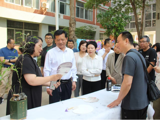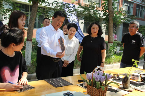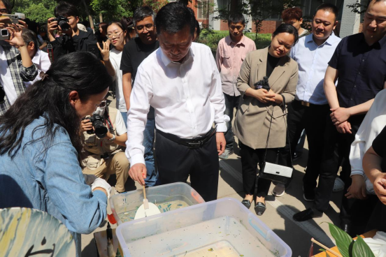 孙功奇、高炜现场观摩了活动,亲自体验了漆扇的制作过程,并对此次活动给予了高度评价。孙功奇表示,这次活动不仅是对“五育并举”教育方针的深入贯彻,更是对中华优秀传统文化的有力传承与弘扬,期待美术学院能够继续挖掘和拓展丰富多彩的艺术体验活动,为同学们提供更多展示才华、锻炼能力的平台,把传统文化艺术推广开来。他指出,美术学院要充分发挥专业特色,深入开展好与省内外知名文化企业的交流合作,不断深化校企、校地合作,积极促进毕业生就业创业,助力地方文化产业建设和发展。