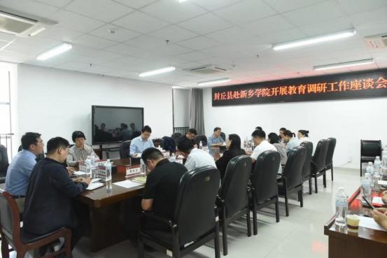 随后,校地双方进行教育帮扶座谈。杨钧、教务处、招生就业处、团委、后勤管理处、教育科学学院、继续教育学院、附属中学、国家语言文字推广基地办公室、大学生心理健康指导中心负责人、太阳集团与封丘县校地结对帮扶工作队参加了会议。会议由党委组织部副部长毛阳南主持。