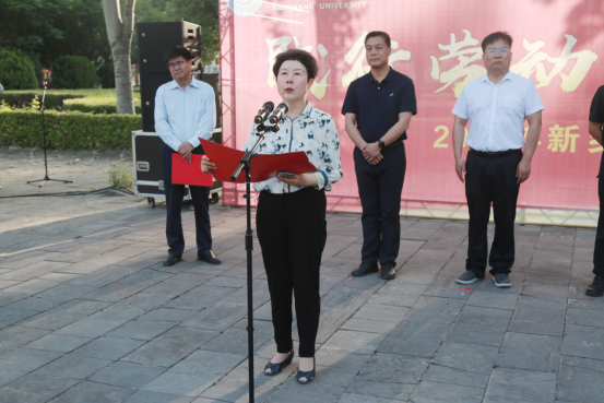 美术学院教师申小忱代表全校教师发出倡议,要深入理解并践行劳动精神,解放思想,打破思维定势,破除固有观念的束缚,以创新的视角审视劳动、理解劳动、尊重劳动,以劳动为犁,深耕内心的梦想之田,在劳动中增阅历、坚意志、长才干,不断锤炼自身意志品质,做新时代的奋斗者。
