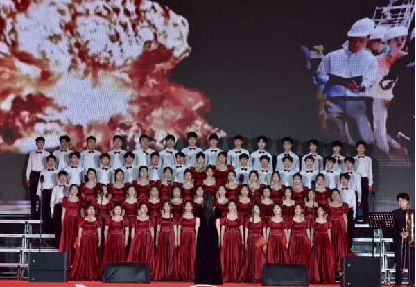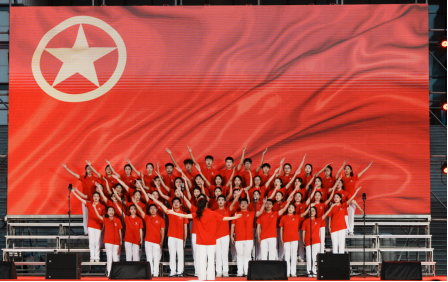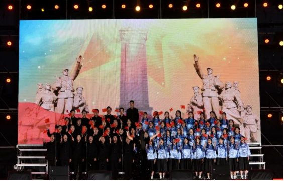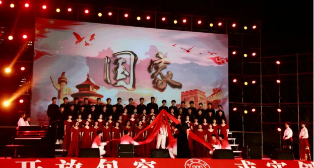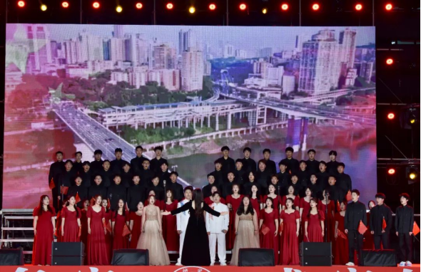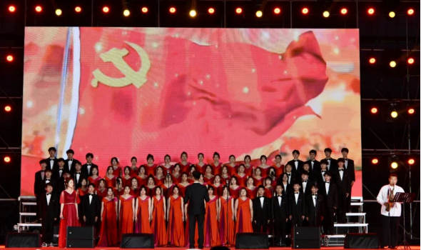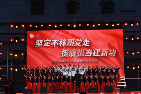 随后,“坚定不移跟党走 挺膺担当建新功”学生合唱展演正式开始。由分团委书记和学生组成的主持人依次登台,为大家讲述篇章背景及歌曲背后的故事,来自全校22个学院的合唱团通过唱响党的赞歌、唱响祖国颂歌、唱响时代强音、唱响青春旋律四个篇章,为全校师生展现了中国共产党百年风雨历程,新中国七十五载沧桑巨变,新时代伟大变革,青年的责任与担当,为全校师生带来了一场别开生面的视听盛宴。