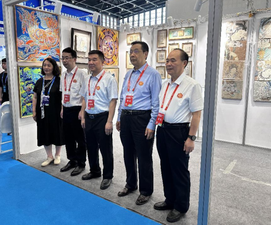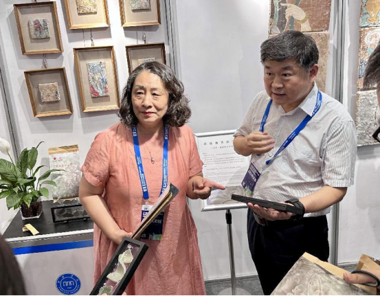 科研处接到参会布展任务后,高度重视,会同美术学院进行精心筹备。经过审慎筛选,决定展示“可以带回家的千年壁画”“传统纹样丝巾文创”“宋代河南钧窑系青瓷标本”等一系列文创产品,充分彰显了太阳集团在文化传承、校企合作、服务社会等方面的新成果和新成绩。成果展期间,河南省教育厅一级巡视员、副厅长刁玉华到现场指导工作。