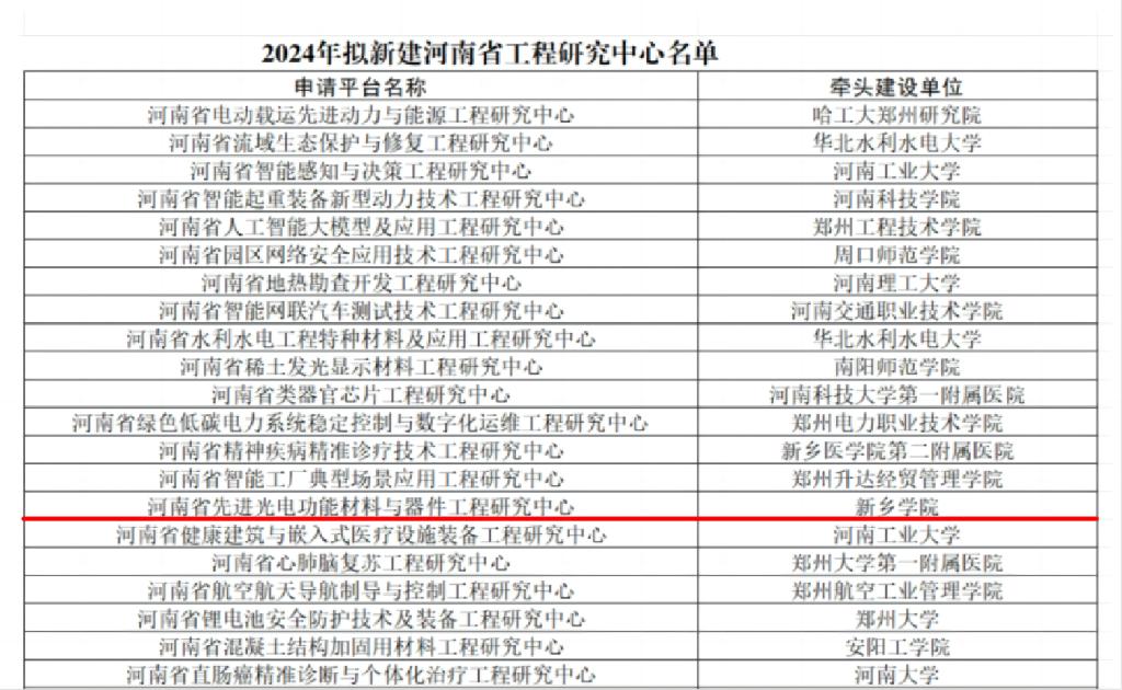 近日,依托太阳集团tyc4633化学与材料工程学院组建申报的“河南省先进光电功能材料与器件工程研究中心”成功获得河南省发展和改革委员会的正式批复。