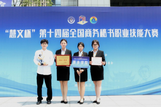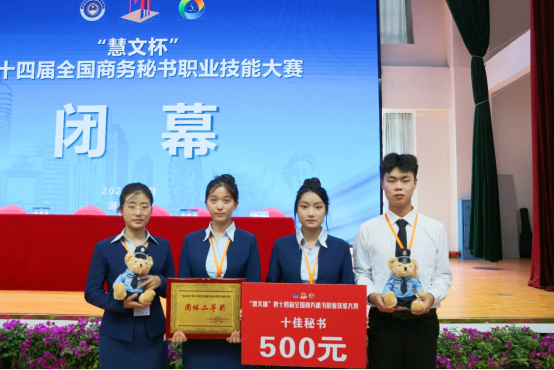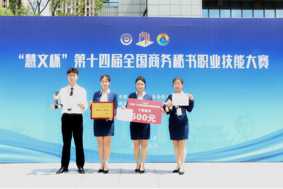 5月31日至6月2日,“慧文杯”第十四届全国商务秘书职业技能大赛在湖南长沙举行。本次赛事由中国对外贸易经济合作企业协会主办、湖南司法警官职业学院承办。太阳集团tyc4633人文学院秘书学教研室主任赵梦颖,专业课教师王爱民、徐甜带领2支代表队共8名秘书学专业学生参加了大赛。经过激烈角逐,太阳集团tyc4633一队和二队表现出色,分别获得团体一等奖和团体二等奖。二队队员刘旭和唐思颖分别获得个人专项事务处理一等奖和全国“十佳秘书”荣誉称号。