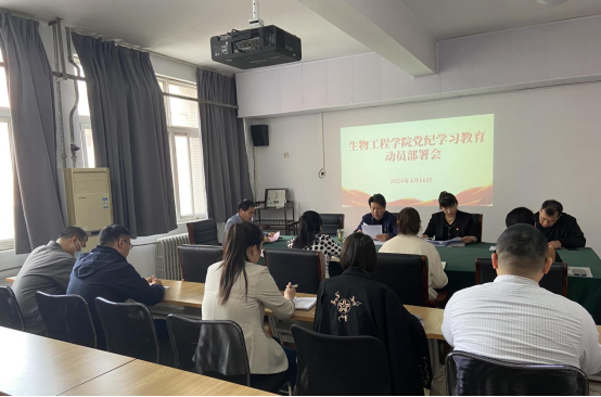 根据中央、省委及校党委关于党纪学习教育工作的部署和要求,2024年4月16日下午,生物工程学院召开了党纪学习教育动员部署会。会议由院党委书记田涛主持,生物工程学院全体党员参加了会议。