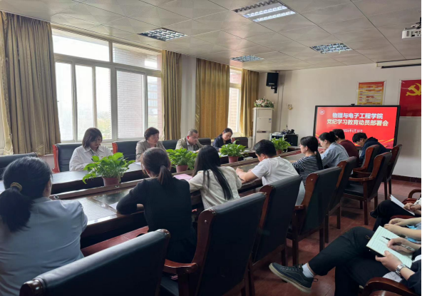 4月16日下午,物理与电子工程学院召开党纪学习教育工作部署动员会,学院全体教师党员参加会议,会议由党委书记张晓蕊主持。